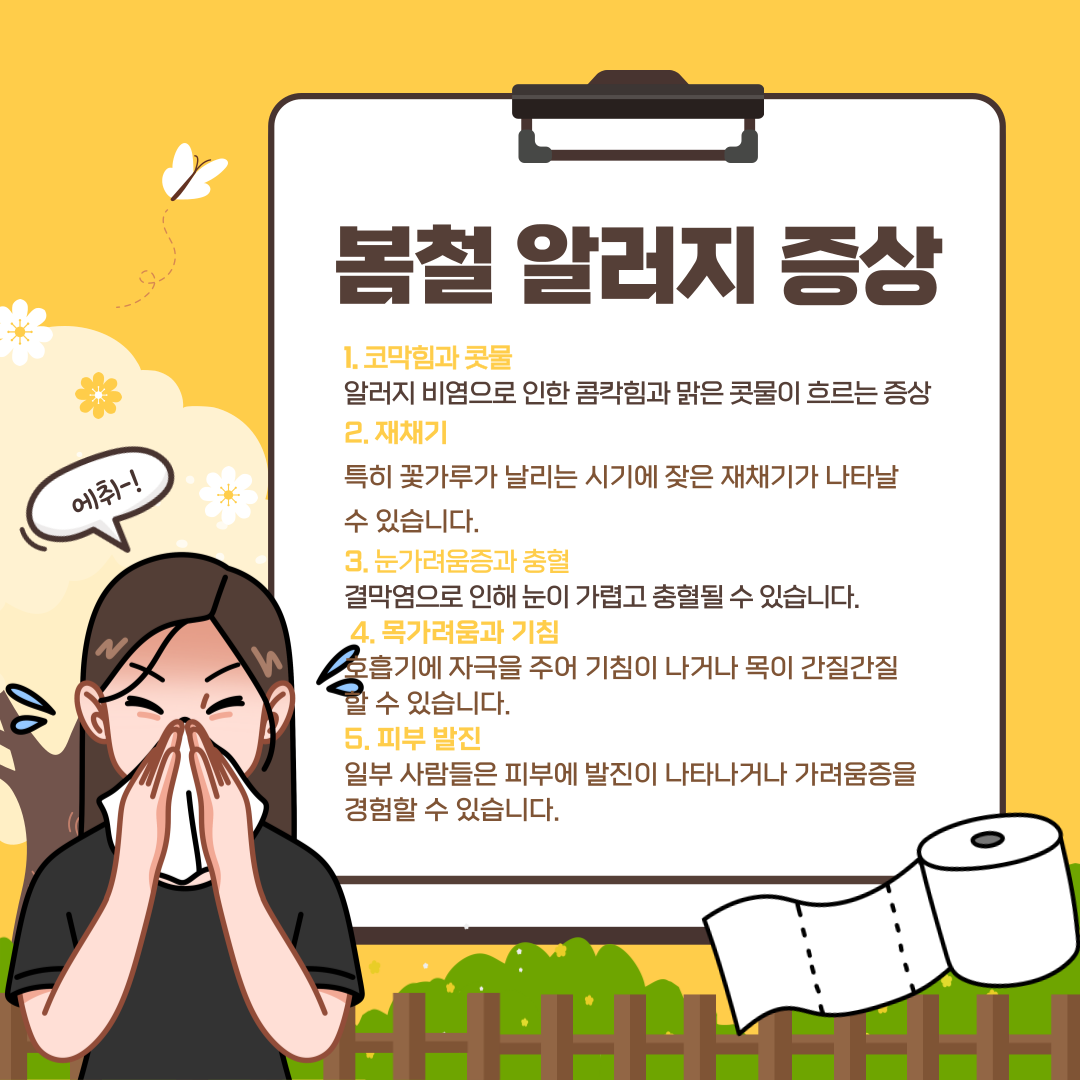 봄철 알러지는 꽃가루와 미세먼지 등 다양한 환경적 요인에 의해 발생합니다.