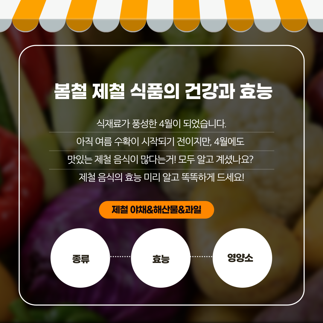 오늘은 봄 제철 음식과 제철 음식을 활용한 레시피를 함께 알아보겠습니다☺️