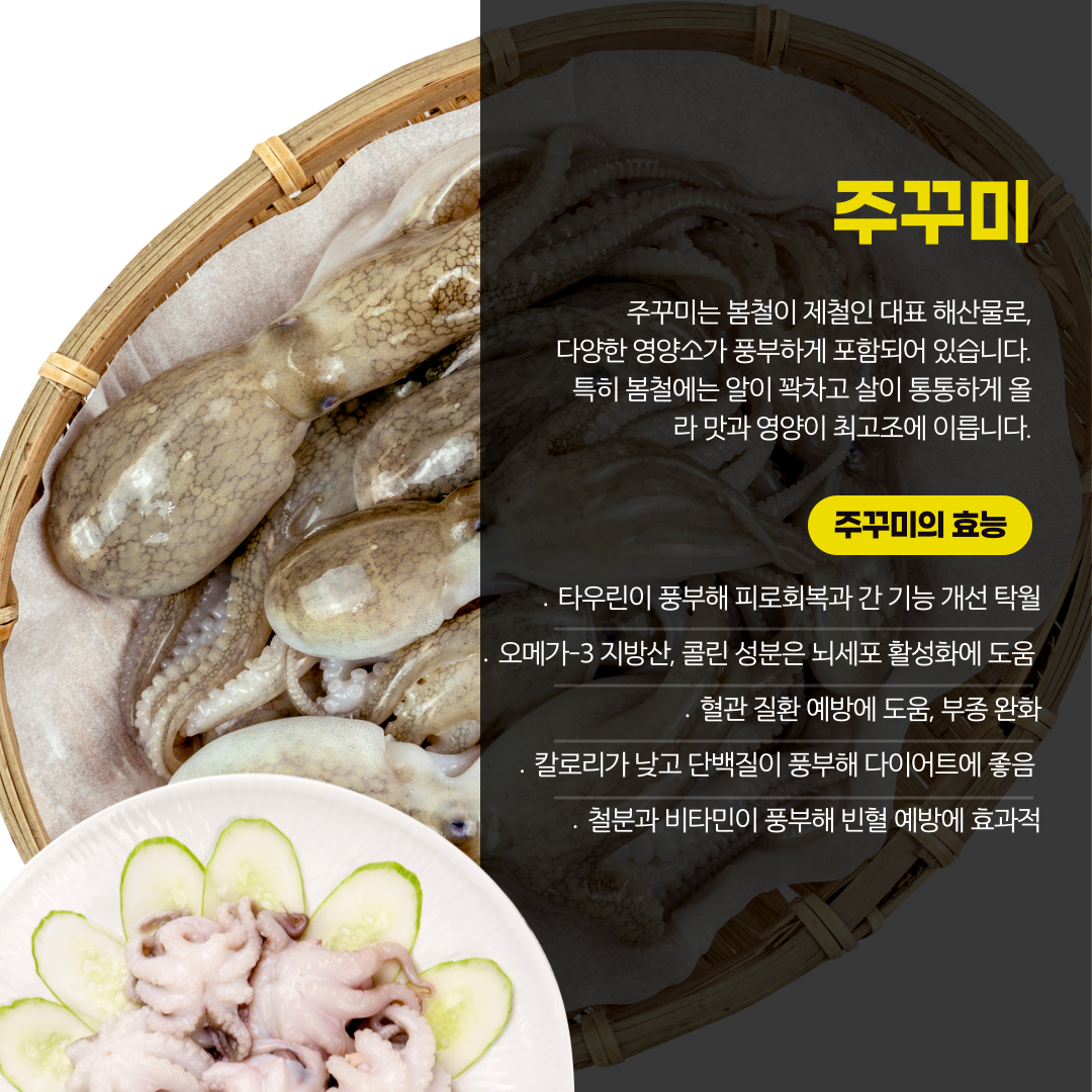 - 타우린이 풍부하게 함유되어 있어 피로 회복과 간 기능 개선에 탁월해요