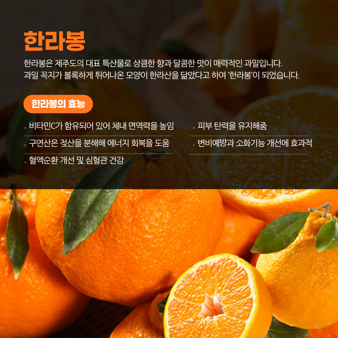 - 레몬보다 많은 비타민 C가 함유되어 있어 체내 면역력을 높이고 감기 예방에 탁월해요